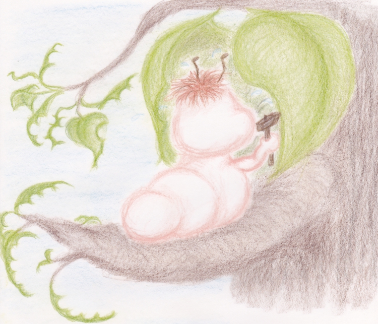 Unser Räupchen ist voll und ganz in seine Arbeit vertieft. Nur ab und zu knabbert es ein Blatt vom Baum um sich zu stärken.