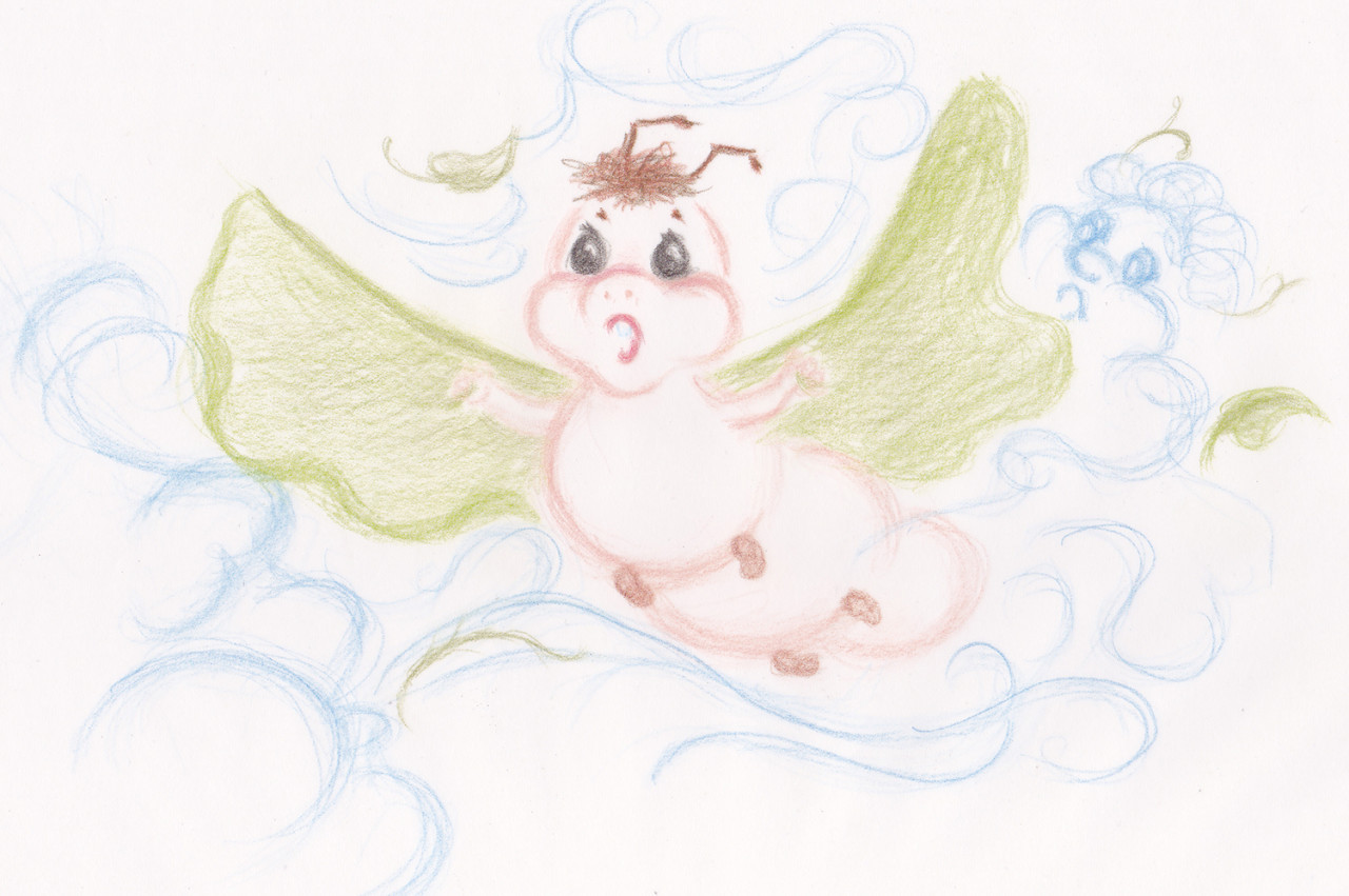 Die schönen neuen Flügel unseres Räupchens flatterten und es wurde ihm ganz bange.
